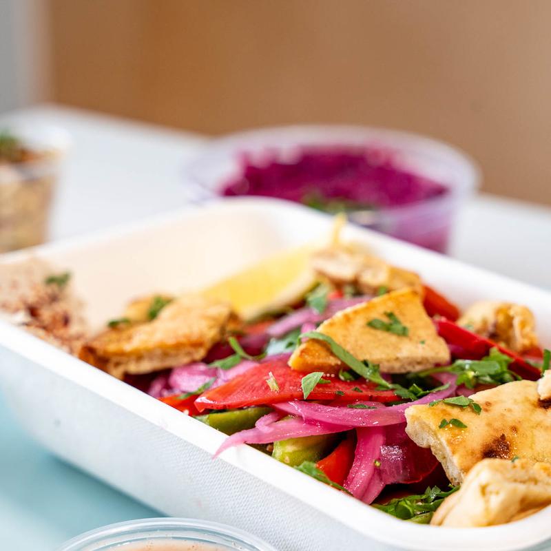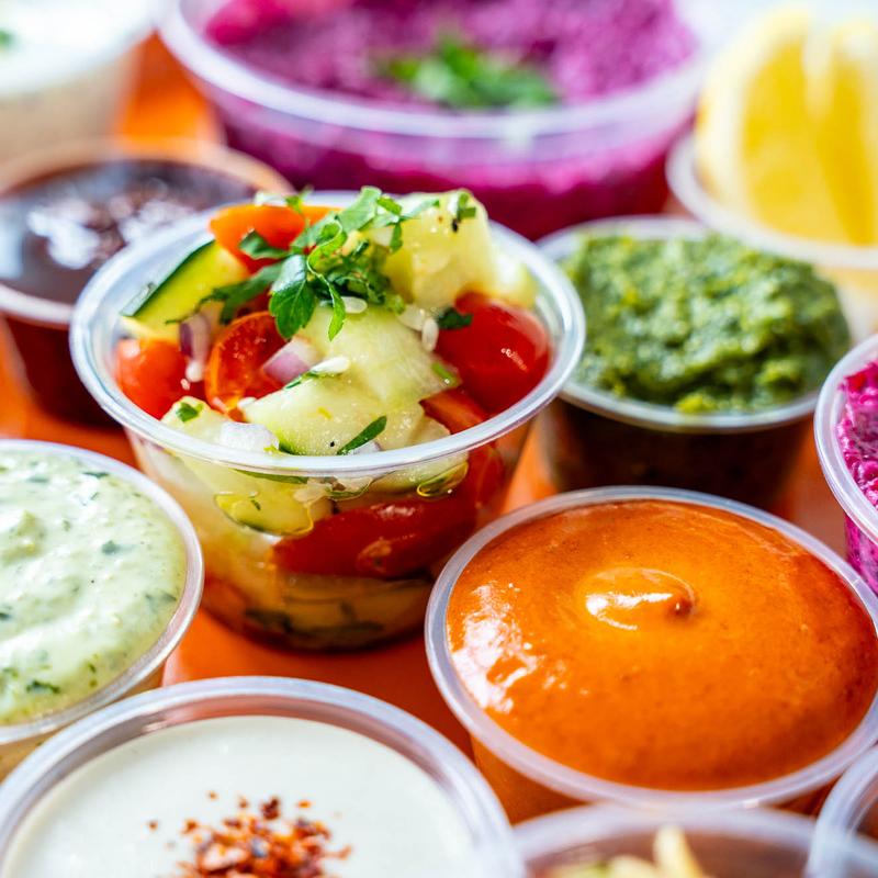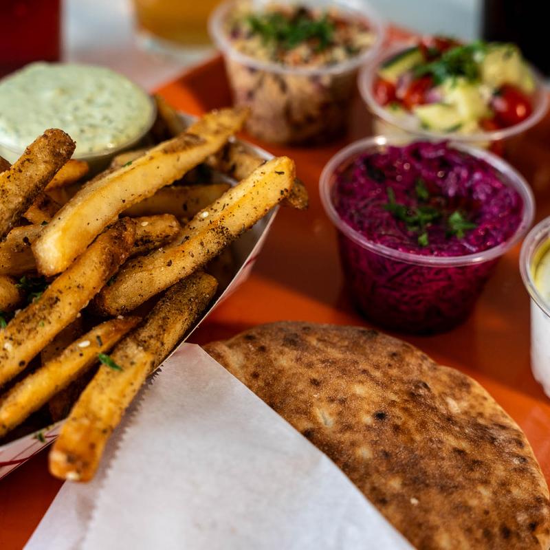 We got take out the other night and everything was so yummy! The pita was so so good and light and fluffy. I loved every single one of the dips and sauces but I think my favorite was the basil chimichurri (my whole meal could have been this and pita bread and I would have been happy). The hummus was also some of the best I've had. We will for sure be back!